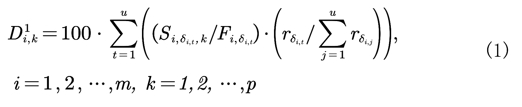(3)某个教学目标下的所有考核方式贡献度求和即为学生在该课程目标下该方法下的评价得分(“总评考核”方法)。