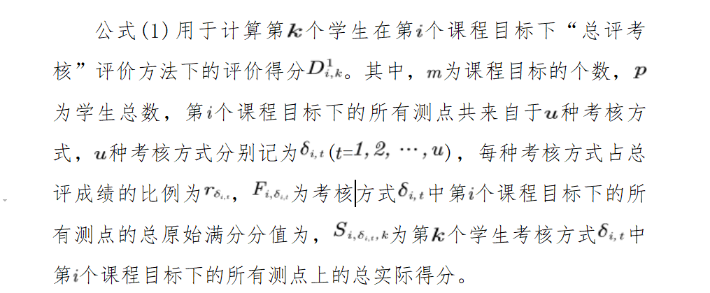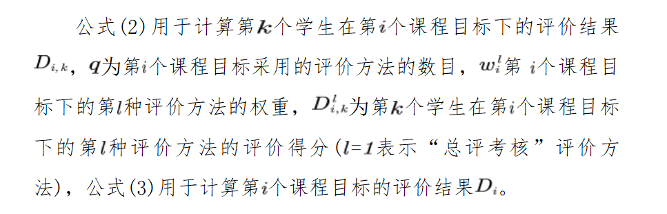 学生在课程目标下“总评考核”评价方法下的计算公式如下: