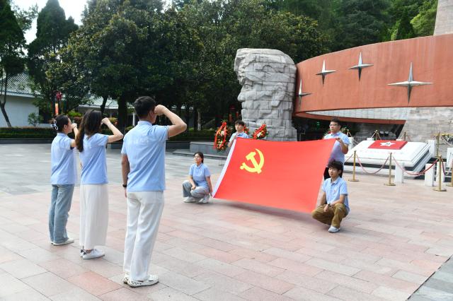 实践团队深入遵义红军烈士陵园,怀着无比崇敬的心情,缅怀为中国革命事业英勇献身的红军先烈。步入陵园,庄严肃穆的革命烈士纪念碑巍然矗立,“红军烈士永垂不朽”八个金色大字在阳光下熠熠生辉。实践服务队于碑前举行了庄严的祭奠仪式。全体队员整齐列队,静默肃立,向革命先烈敬献鲜花、鞠躬致意,深切缅怀英雄壮举,致以最崇高的敬意。随后,团队党员师生面向鲜红的党旗,举起右拳,庄严宣誓:“我志愿加入中国共产党,拥护党的纲领,遵守党的章程……”铿锵有力的誓言回荡在陵园上空,不仅是对革命先烈的告慰,更是实践队员坚定理想信念、践行初心使命的郑重承诺。宣誓结束后,实践服务队沿着石阶缓步走到红军烈士墓前,仔细阅读墓碑上的烈士事迹,聆听讲解员讲述红军战士在遵义期间浴血奋战、不怕牺牲的英雄故事。队员们纷纷表示,今日安康繁荣,乃是无数革命先驱以热血与生命铸就的历史丰碑,作为新时代的青年一代,必将赓续红色血脉,以知行合一践行初心使命,在民族复兴的伟大征程中贡献青春力量。