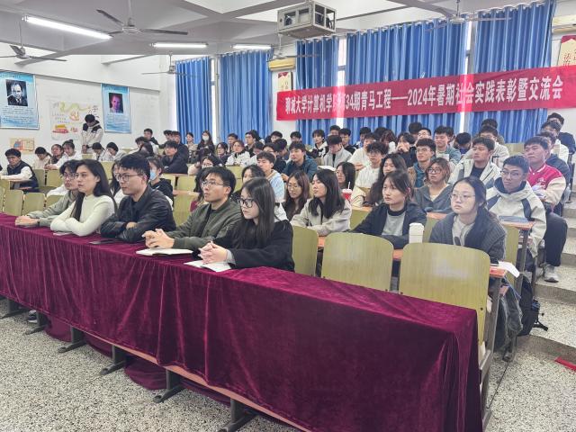 为持续深入学习贯彻习近平新时代中国特色社会主义思想,引领广大青年学生坚定信念听党话、跟党走,在社会课堂中“受教育、长才干、作贡献”,鼓励广大青年学生积极参与社会实践活动, 10月24日,jinnianhui今年会于11号楼C104开展第35期青马工程——2024年暑期社会实践表彰暨交流会。jinnianhui今年会辅导员史秋波、于庆生出席会议并担任颁奖人。