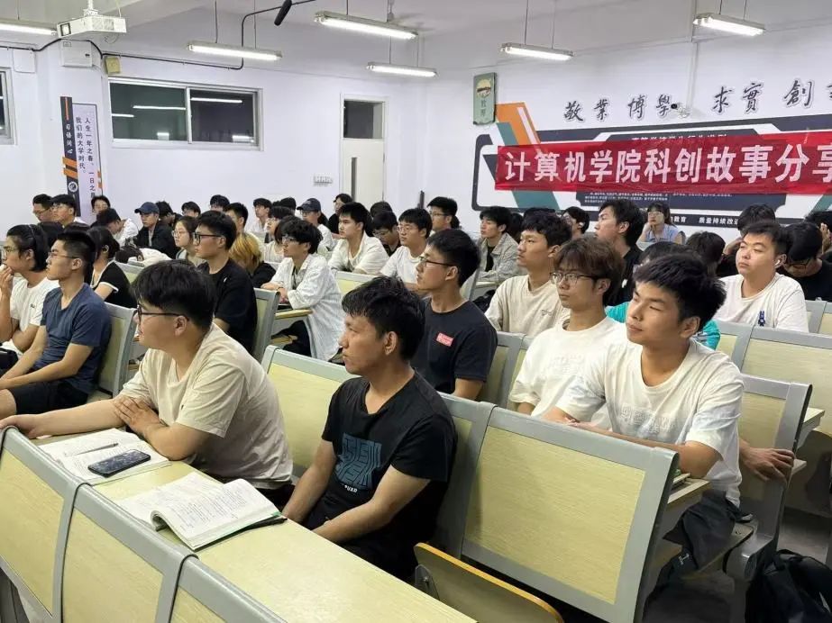分享会上,学生代表以逻辑清晰的框架展开经验分享,详细阐述了科创项目从构思到落地的全流程规划。他着重强调,在科创之旅中,清晰明确目标是迈向成功的关键一步。随后,他深入剖析了计算机领域的各类学科竞赛与创新创业类竞赛,结合赛事特点、参赛要求、获奖案例等,让在场同学对科创竞赛有了更全面、更深入的认识。在未来规划环节,学生代表通过时间轴梳理个人成长轨迹,分享从学科竞赛参与者到项目负责人的角色转变心得。他鼓励同学们立足当下,做好短期目标与长期规划的衔接,建议通过参与实验室项目、校企合作课题等方式,提前积累科研经验,为未来深造或就业奠定坚实基础。在互动环节,同学们就项目选题方向、跨学科团队协作、科研成果转化等实际问题与分享者展开热烈讨论。分享者们结合自身经验,为同学们答疑解惑,提出了许多具有针对性和可操作性的建议,现场交流氛围浓厚。