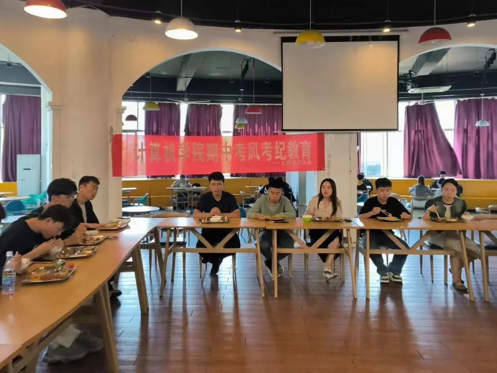活动伊始,于庆生向大家介绍了此次餐厅沙龙活动的主题和宗旨。针对考风考纪,于庆生特别突出了诚实守信在考试中的基石地位。他强调,作弊不仅是对学校严谨学风的践踏,更是对个人能力和品格的极大否定。他呼吁同学们务必自觉遵守考试纪律,严格遵循考试规则,绝不抄袭他人,不扰乱考场秩序,坚决捍卫诚信考试的尊严。在活动过程中,辅导员老师们与同学们展开了深入的交流,老师们以生动具体的真实案例为引,让同学们对考风考纪的重要性有了更加深刻的体悟。同学们纷纷踊跃参与讨论,争相发表对考风考纪的见解和建议,讨论现场气氛活跃且富有建设性。活动最后,团委书记张雪表示,相信每位同学都能自觉遵守考试纪律,恪守考试规定,坚决杜绝抄袭、扰乱考场的行为,始终坚守诚信为本的考试原则,并将这份严谨的态度传达给各班的同学们。