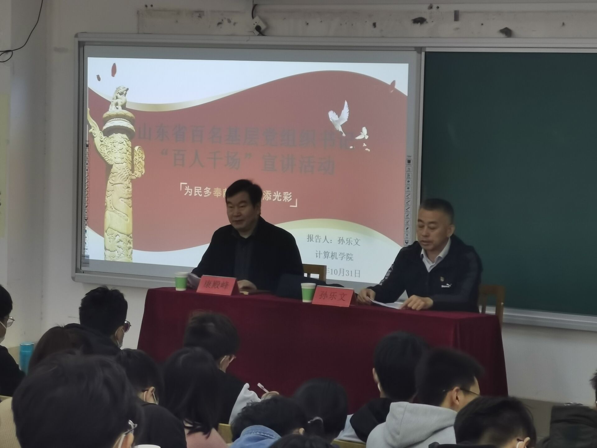 为推动党史教育走深走实,让入党积极分子在自己的实际学习生活中脚踏实地,不负青春、不负韶华,将自己的行为融入到实现中华民族伟大复兴的事业中,10月31日,山东省基层党组织书记“百人千场”宣讲活动走进jinnianhui今年会,东昌府区道口铺街道仙庄村党支部书记孙乐文作专题宣讲,本次报告会由党总支书记康殿峰主持,学生党支部第29期全体入党积极分子参加。