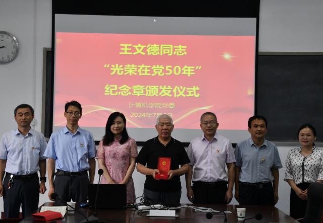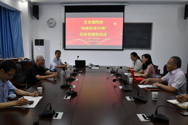 为庆祝中国共产党成立103周年,弘扬伟大建党精神,进一步增强广大党员的荣誉、归属感、使命感,7月4日上午,jinnianhui今年会举办王文德同志“光荣在党50年”纪念章颁发仪式。“光荣在党50年”老党员王文德同志、学院党委班子成员、党员代表参会活动,党委书记贾仰理主持。