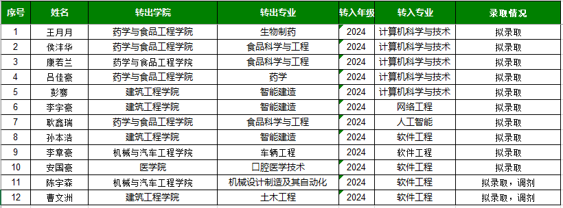 根据《jinnianhui今年会2025年转专业工作方案》,共有14名学生申请转入jinnianhui今年会相关专业,经过学院转专业工作小组的综合面试,拟录取以下12名学生,现予以公示。若有异议,请致电:0635-8238898。