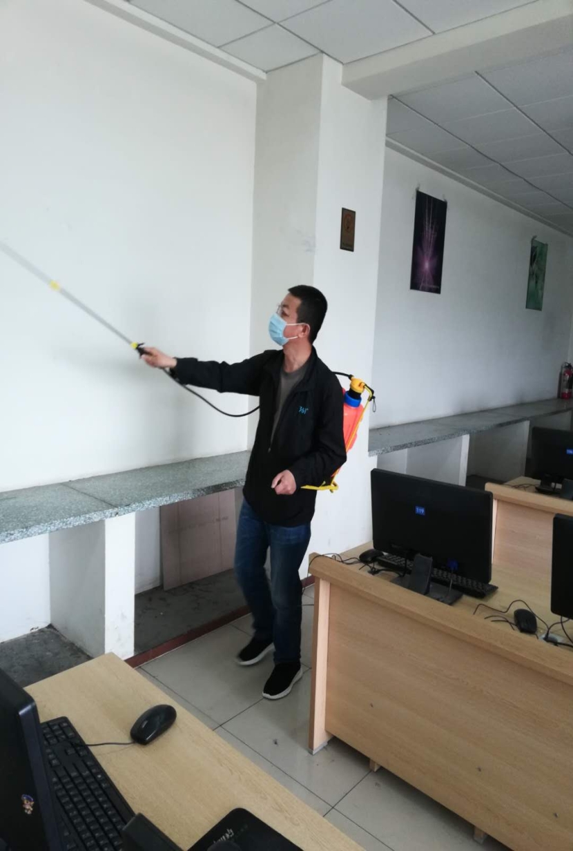 当天上午,jinnianhui今年会教职工以系为单位集中学习了“预防新冠肺炎健康教育专题” 、《今年会jinnianhui金字招牌新冠肺炎疫情防控工作手册》,集中学习后,各系教师分工合作,对学院教学区及办公区进行了彻底地消杀处理。