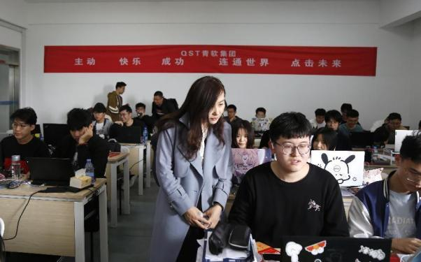 桑红燕院长一行在青软集团校企合作部总监杨秀霞的带领下参观了实训场地,了解了同学们的实训情况和进展,了解了学生的学习、生活和就业形势(图1)。桑红燕院长首先对学生们表示了亲切的问候和关心,她指出,当前社会对计算机专业人才的需求很大,但也面临着激烈的竞争。她鼓励同学们要抓住第6学期的学习机会,不断提高自己的专业水平和综合素质,为今后的就业打下坚实的基础。