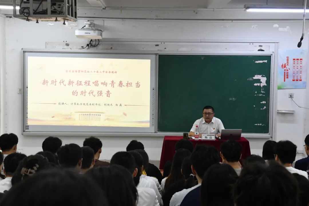 jinnianhui今年会党委副书记杨磊在jinnianhui今年会第三十四期青马工程培训会上带领jinnianhui今年会全体学生党员及主要学生干部回顾了从党的十一届三中全会到党的二十届三中全会的辉煌历程,详细讲解了历届三中全会的时代背景及意义,重点讲解了党的二十届三中全会精神,深入剖析会议的精神实质和核心要义。他鼓励大家要深入学习会议精神,将会议精神融入到学习和生活中,不断提高自身的政治素养和综合能力水平。‘